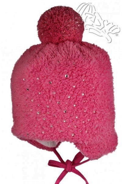 - Čepice dívčí s bambulí -aplikace kamínky 3413-1 RADETEX