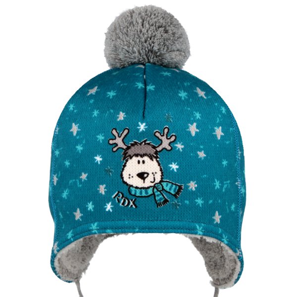 Čepice zimní vázací s bambulí tisk LOS 3831 RDX