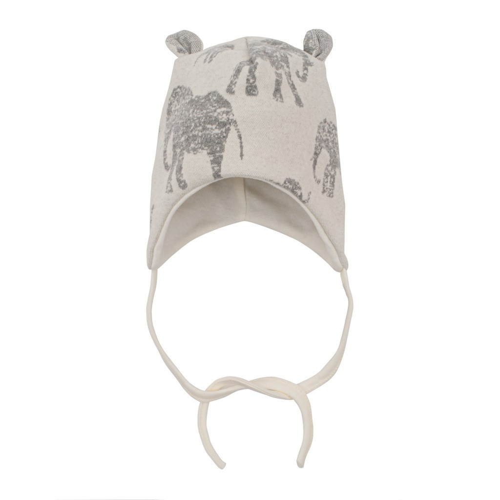Kojenecké čepička s bavlněnou podšívkou Baby Service Sloni pro miminka. Čepička je zdobená potiskem slonů, roztomilými oušky, je hrubší a velmi vhodná na podzim i zimu.