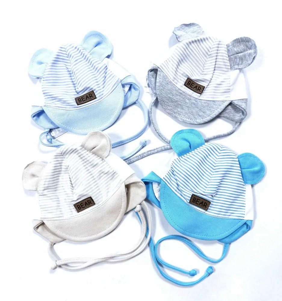 Chlapecká kojenecká čepička s kšiltem, vázací s oušky