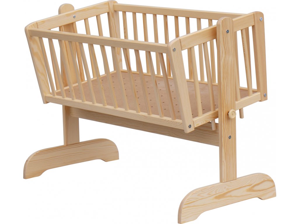 Krásná kolébka z borovicoveho dřeva je ideální pro usínání miminek.