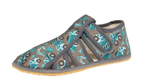 Dětské barefoot bačkory českého výrobce BEDA. normálně široké a širší nožky s normálním až vyšším nártem, vhodné i pro dominantní palec  zapíání na suchý zip v horní části opatek je lehce zpevněný podrážka je tenká, gumová se vzorkem stélka je vyjímatelná, textilní bez podpory klenby a bez tvarován... celý popis