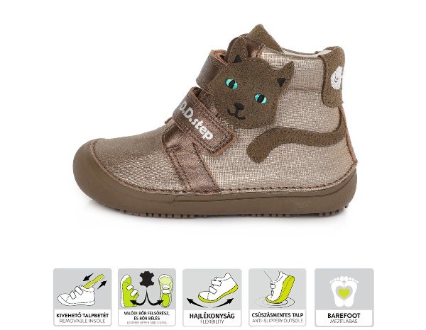 D.D.Step Barefoot je přizpůsoben tvaru nohy a poskytuje maximální detekci povrchu. Bota umožňuje, aby všechny svaly, šlachy a kosti nohy byly spojeny s chůzí, stejně jako při chůzi naboso, čímž přispívají ke zdravému vývoji nohy.