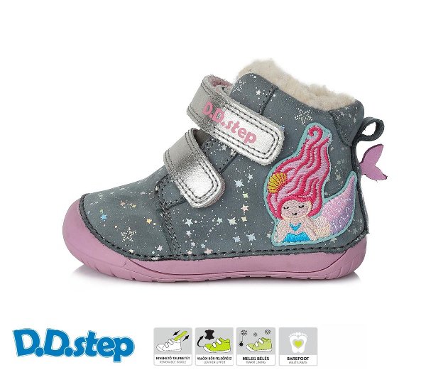 Zimní kožené barefoot boty DDStep vyteplené kožíškem. Třpytivé hvězdičky Kombinace syntetického a přírodního vlákna. Suchý zip pro snadné dotažení v nártu. Praktický okop na špičkách, protiskluzová podrážka. Celokožené zimní boty, dobrá voděodolnost pro běžné chození po městě, na hřišti, do... celý popis