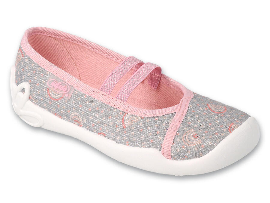 Dětské bačkory Befado na gumičku s větracími průduchy. Odvětraná podrážka zajišťuje prodyšnost boty. Je lehká, pružná a protiskluzová. Bačkory jsou vyrobeny z kvalitních prodyšných materiálů. Mají pevný opatek a nízký klínovitý podpatek. Díky gumičce se bota přizpůsobí výšce nártu a usnadňuje obouvání.