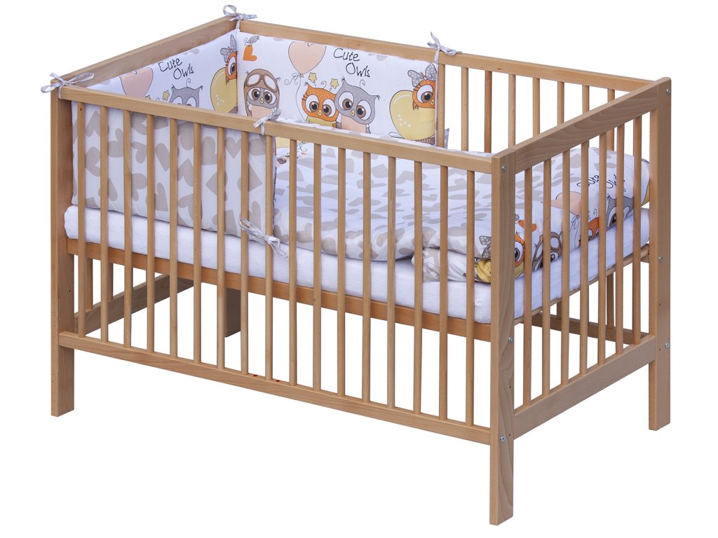 1. Dětská dřevěná postýlka 120x60 cm - přírodní, masiv buk, 3 vyndavací příčky, 2 polohy roštu, nohy jsou předvrtané pro možné nasazení koleček