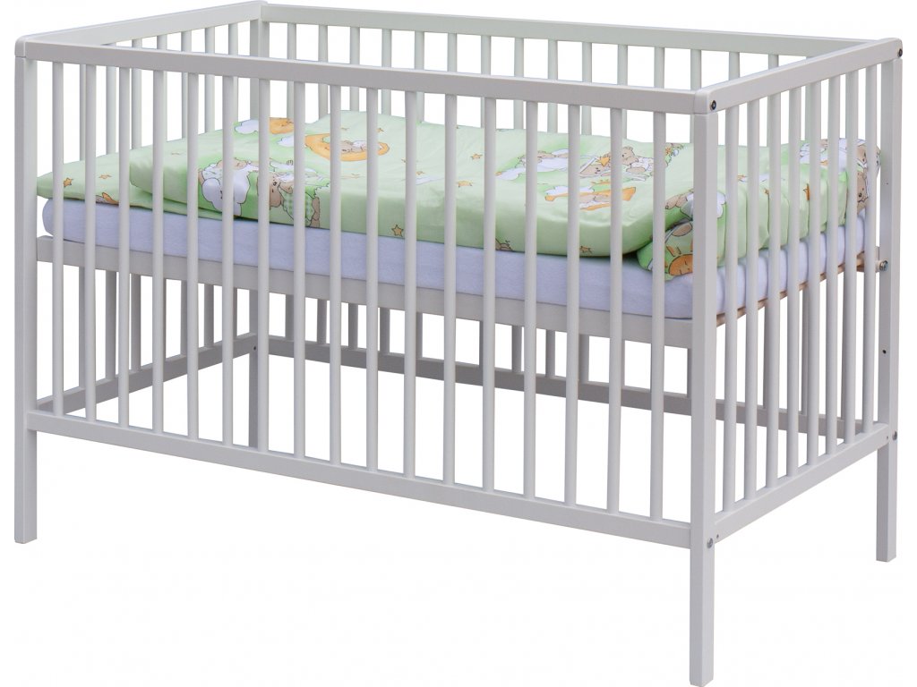1. Dětská dřevěná postýlka 120 x 60 cm - bílá, masiv buk, 3 vyndavací příčky, 2 polohy roštu