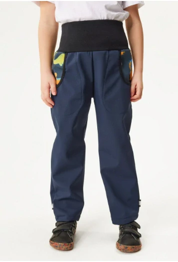 - Dětské softshellové kalhoty s fleecem Basic tm.modročerná/dinosauři