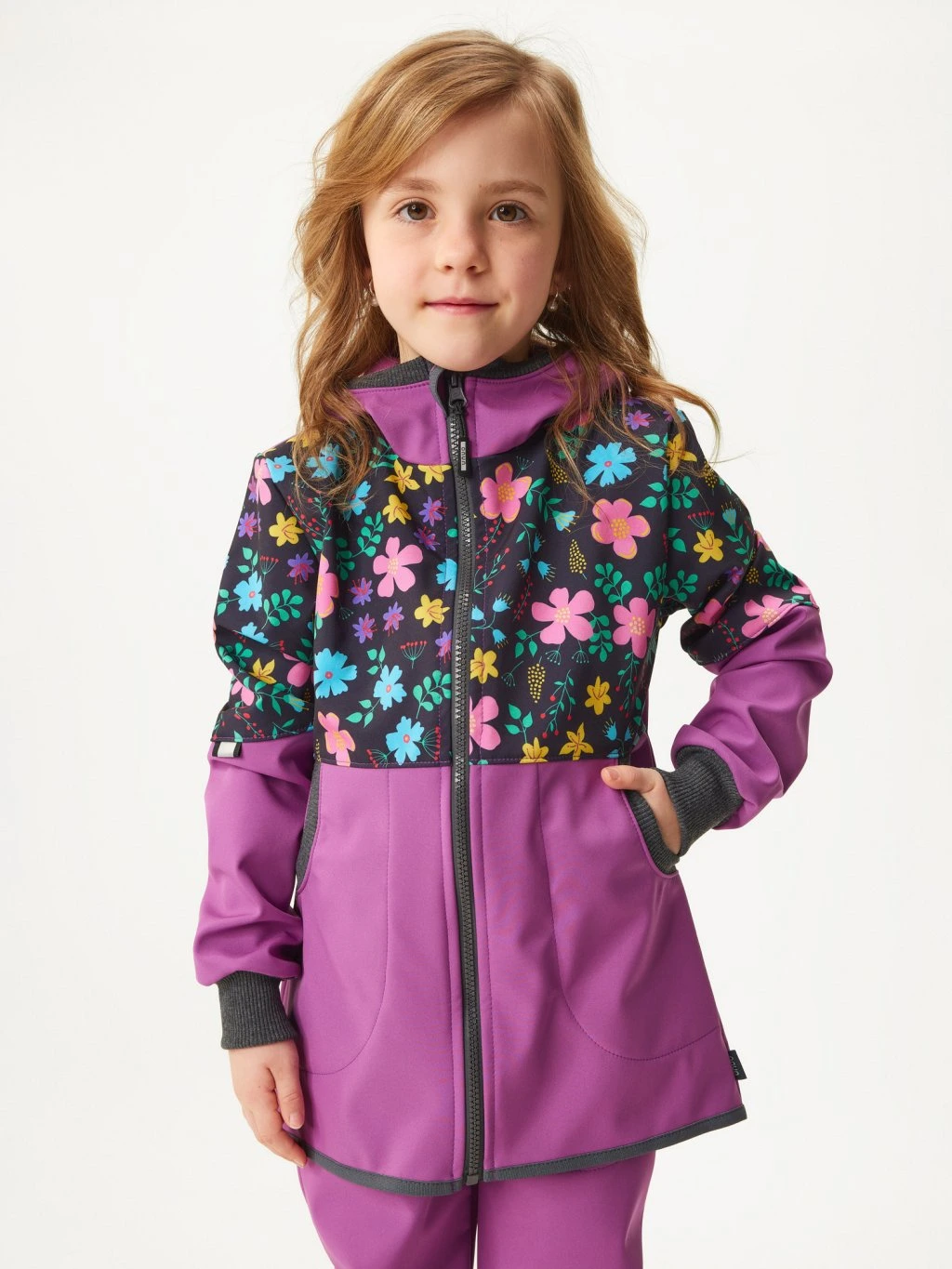 Dívčí softshellový kabát s fleecem street ostružinová/kytičkySkladem1 199 Kč/ ks991 Kč bez DPH