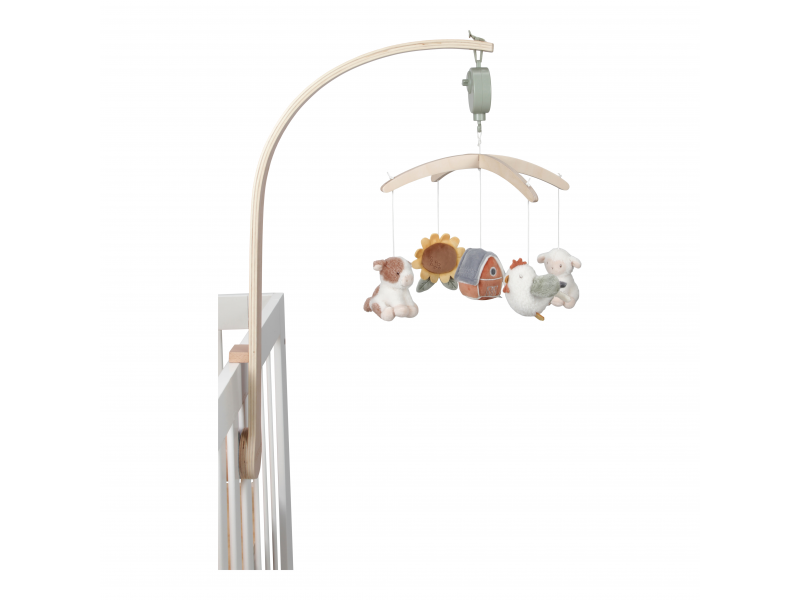 Krásný dřevěný kolotoč z kolekce hraček Little Dutch Farma hraje po natažení ukolébavku pro uklidnění vašeho miminka před spaním. Pozornost dítěte upoutá pět otáčejících se hraček v podobě zvířátek a motivů ze života na farmě.