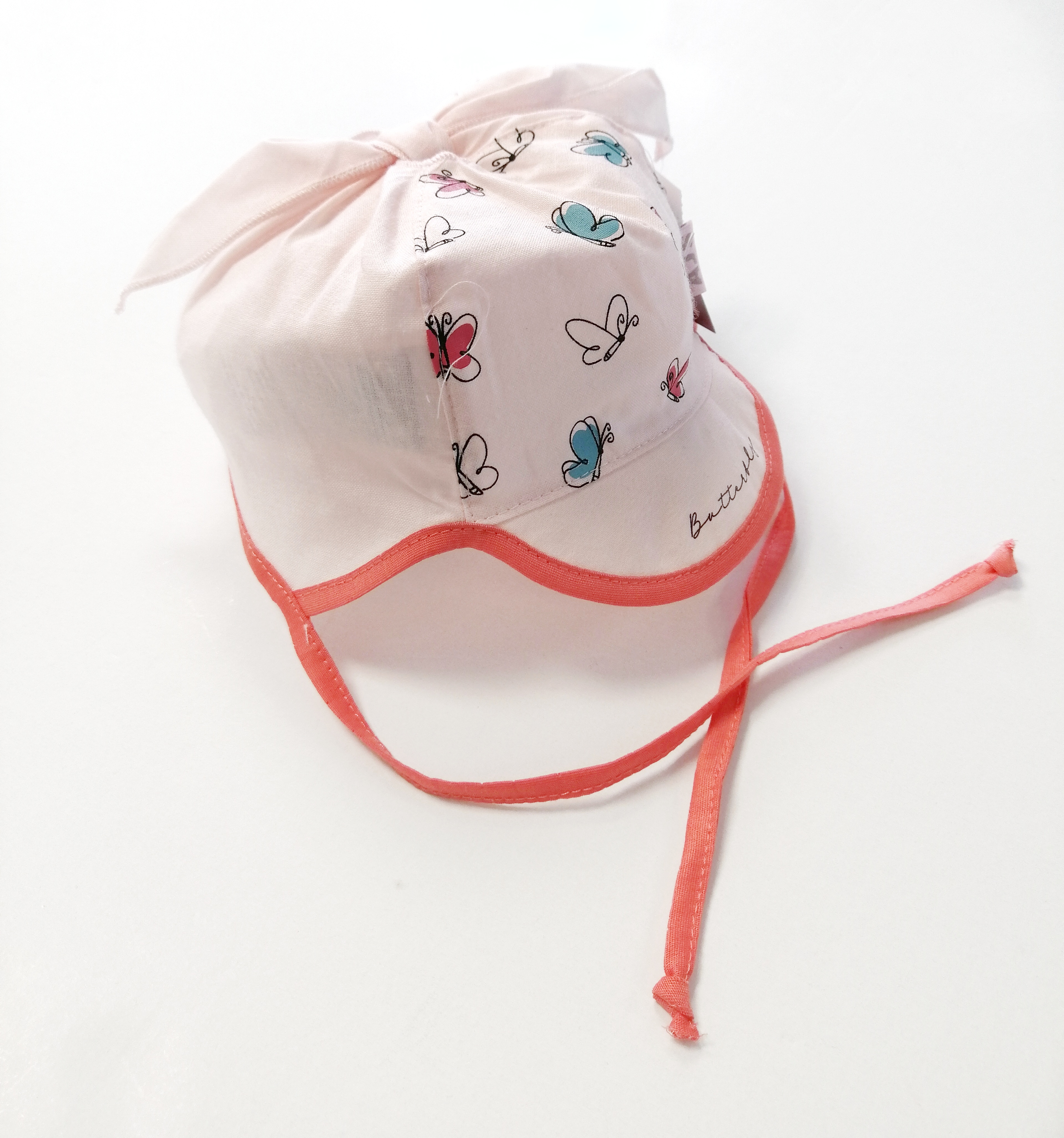Kojenecká letní čepice na zavazování s potiskem motýlků