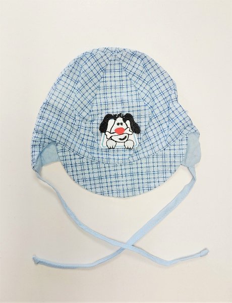 Kšiltovka kojenecká vázací káro - pejsek > varianta modrá