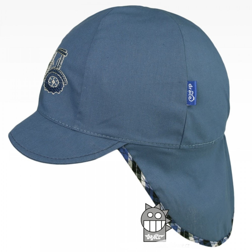 Dětská letní kšiltovka z lehkého materiálu s praktickou plachetkou, chránící zátylek a částečně ramena.