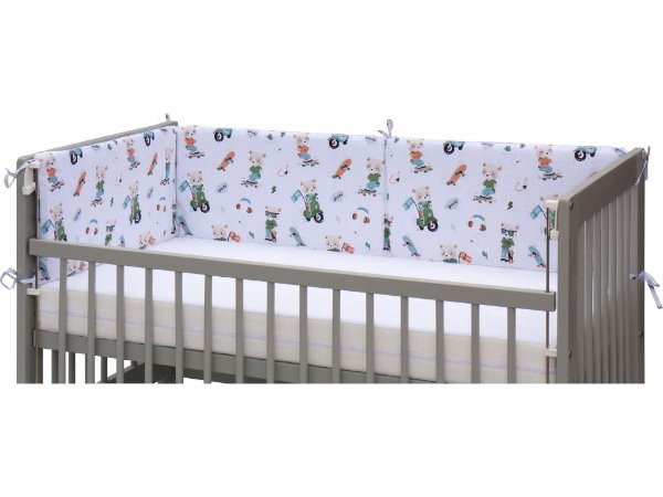 Ochranný límec (mantinel) okolo postýlky pro bezpečnější pohyb dítěte. Límec je do 1-2 postýlky 120 x 60 cm, výška 30 cm. Přivazuje se k tyčkám. Pokud by Vám nestačil límec do půlky postýlky, lze si dát dva proti sobě a mít tak ochranu po celé postýlce.