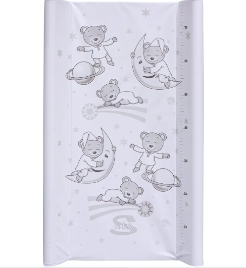 Přebalovací podložka s kapsou na spodní straně a profilovanými okraji z kvalitním PVC potahem bez ftalátů, vyplněná molitanem. Tato podložka je určena na komody s výklopnou deskou. Motivy přebalovacích podložek se často obměňují.