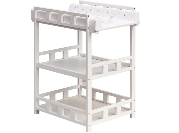 Praktický přebalovací pult se dvěmi policemi z HDF desky. Vrchní přebalovací pult z polyuretanu potažený omyvatelným PVC, vyztužený MDF deskou.