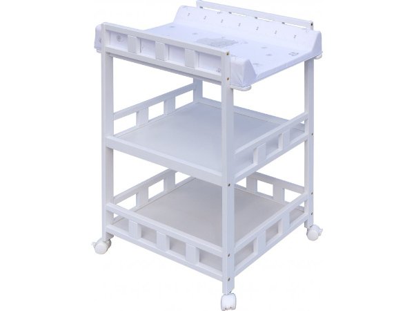 Praktický přebalovací pult se dvěmi policemi z HDF desky. Vrchní přebalovací pult z polyuretanu potažený omyvatelným PVC, vyztužený MDF deskou.
